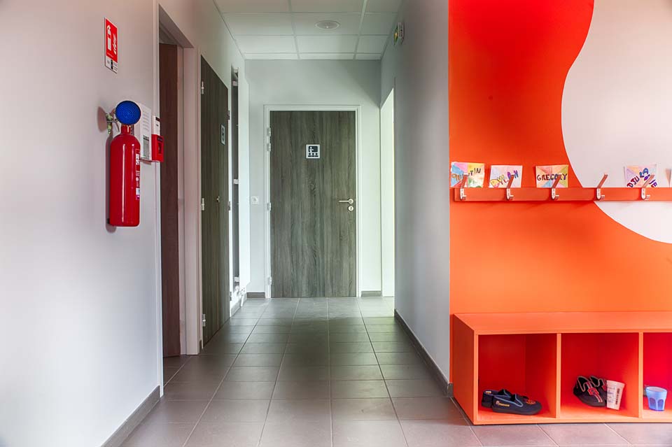 La physionomie s’inscrit pleinement dans le style de la commune. La bâtiment se compose d’un socle enduit de teinte pierre et d’une toiture à double pans qui se prolonge pour réaliser le préau.