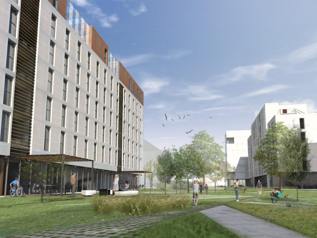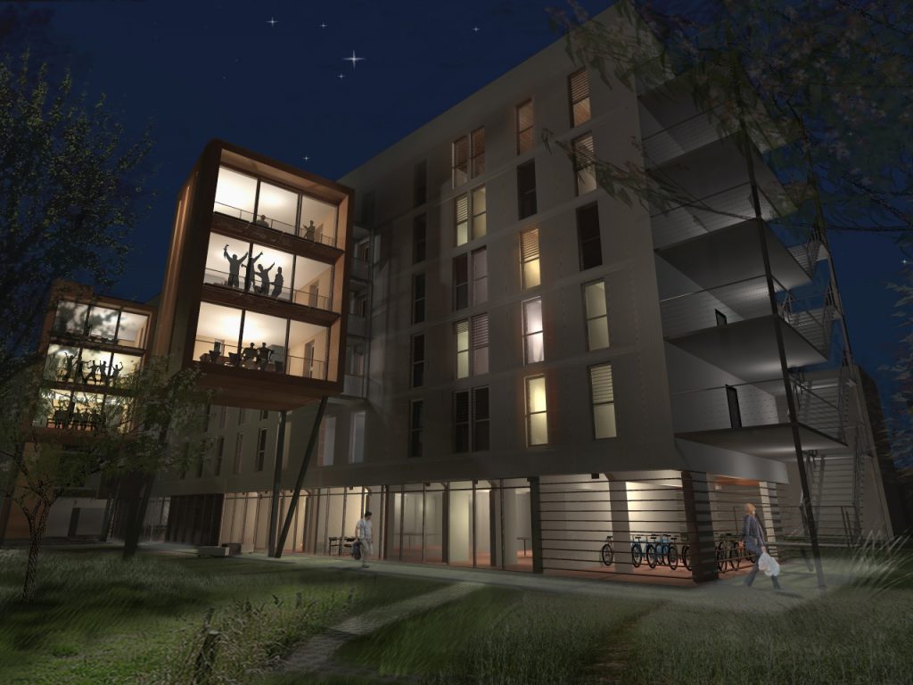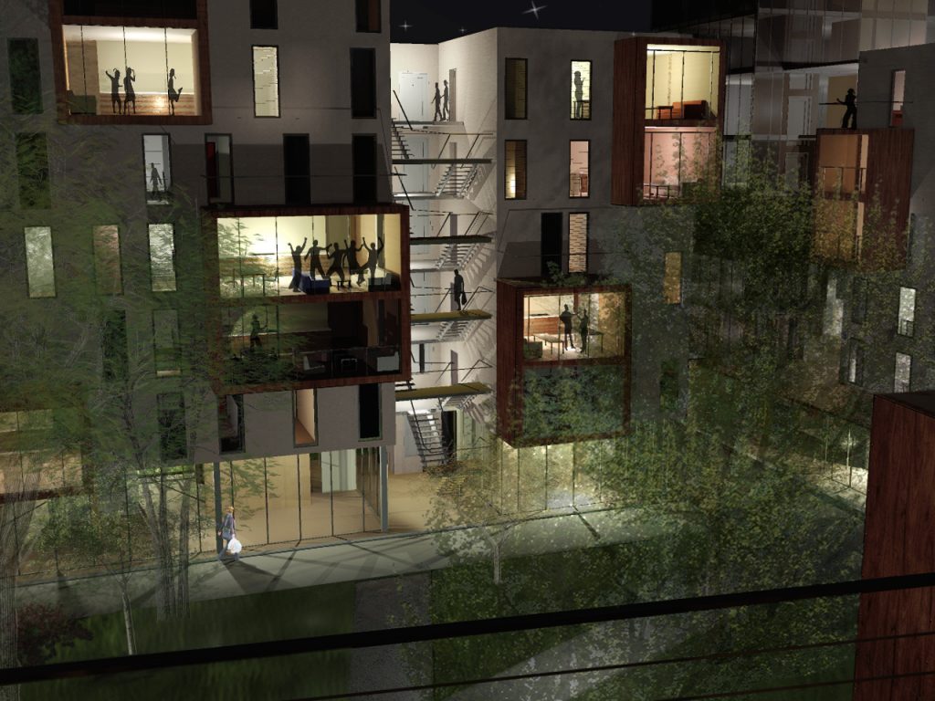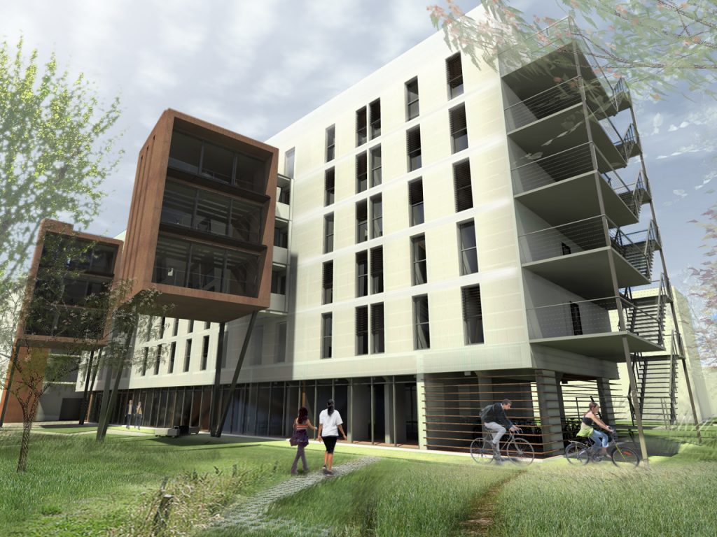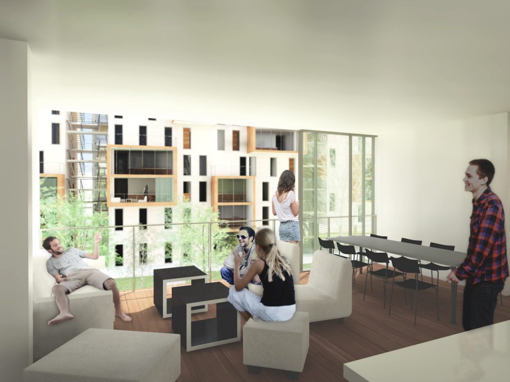 L’infrastructure prévoit de densifier le site de Jussieu, suivant une stratégie de développement éco-responsable et économiquement efficiente. Car il faut pallier à la pénurie de logements étudiants en termes quantitatifs, mais aussi répondre aux attentes qualitatives modernes quant au logement. Il s’agit d’enrichir l’offre existante du Crous par d’autres modes d’habiter urbains. Nous nous sommes lancés le défi de favoriser l’effervescence entre ces étudiants qui vivent et travaillent côte à côte, tout en préservant l’intimité, un besoin primordial. Satisfaire autant le collectif que l’individu.