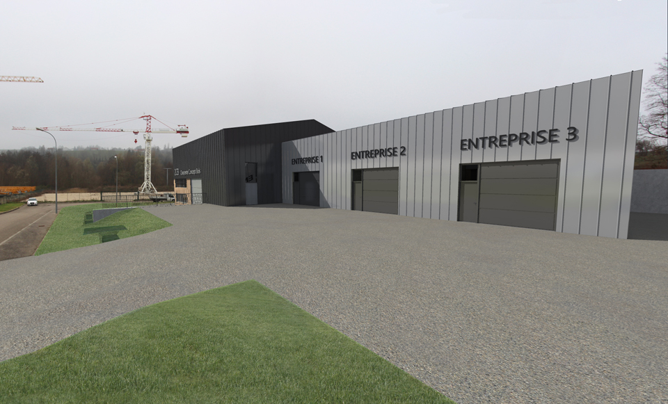 Le projet s’insère dans un terrain en légère pente. Le volume de bâtiment artisanal est alors séparé en deux parties, et en deux paliers.