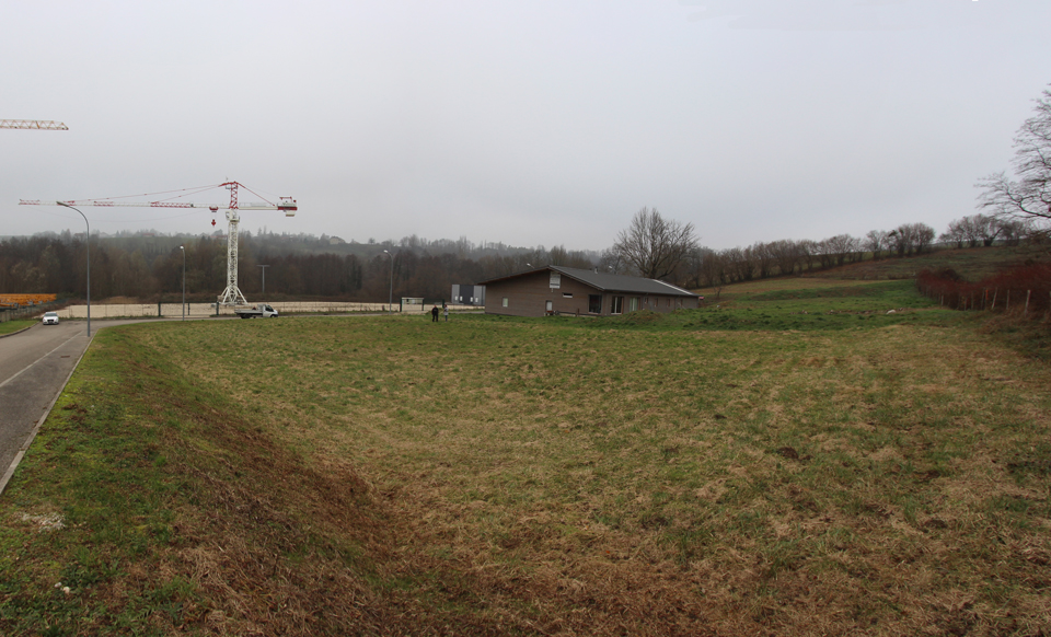 Des noues paysagées viennent créer une clôture végétale autour de la parcelle, et traiter l’infiltration des eaux pluviales, un point sensible du lieu.