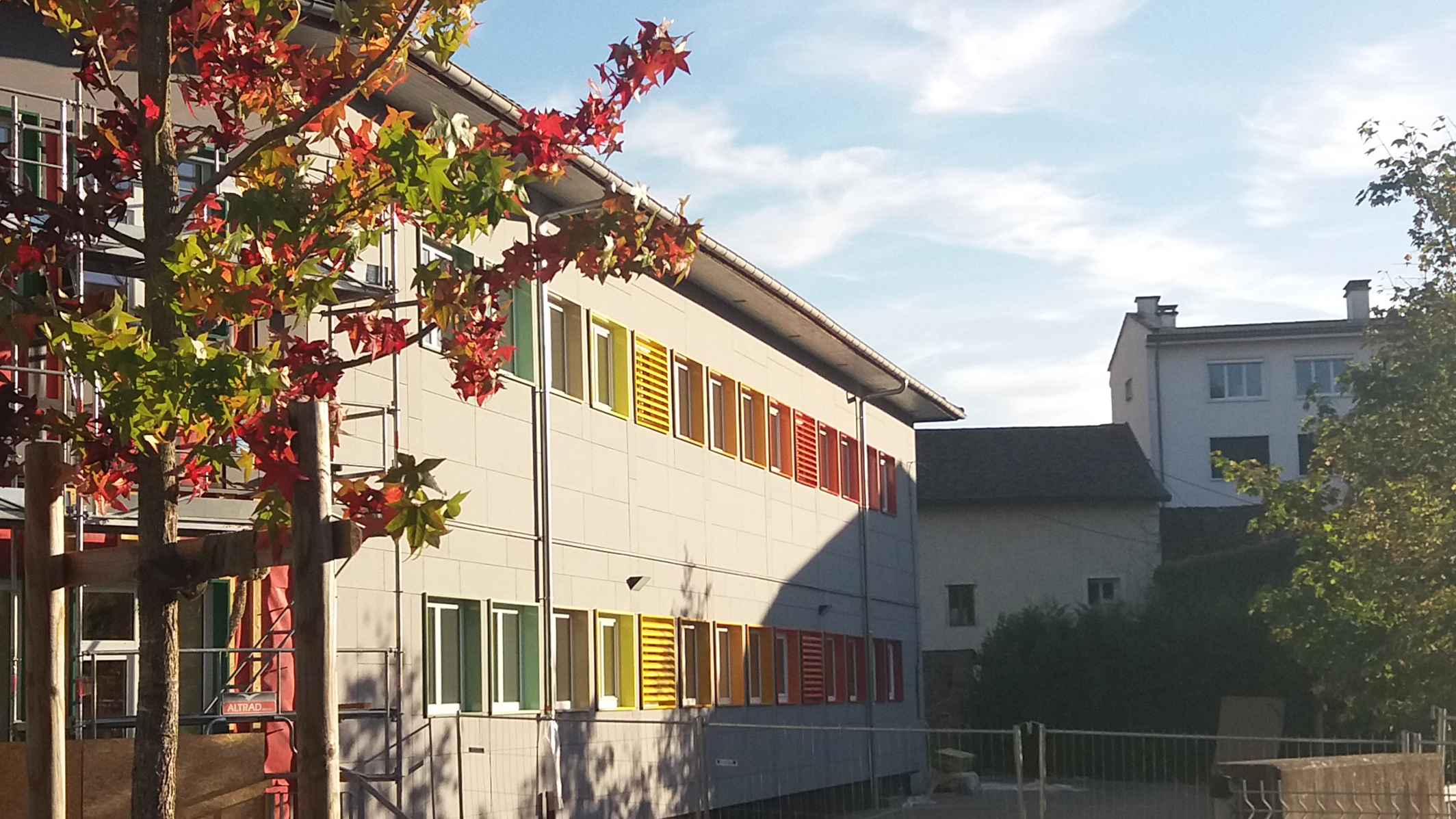Nous étions attaché à filtrer et contrôler les apports solaires pour amener un confort intérieur. Afin d’apporter du dynamisme à cet ensemble imposant destiné à la petite enfance, les teintes des encadrements extérieurs des baies suivront un dégradé de couleur reprenant le spectre de la lumière pour retranscrire ce travail.