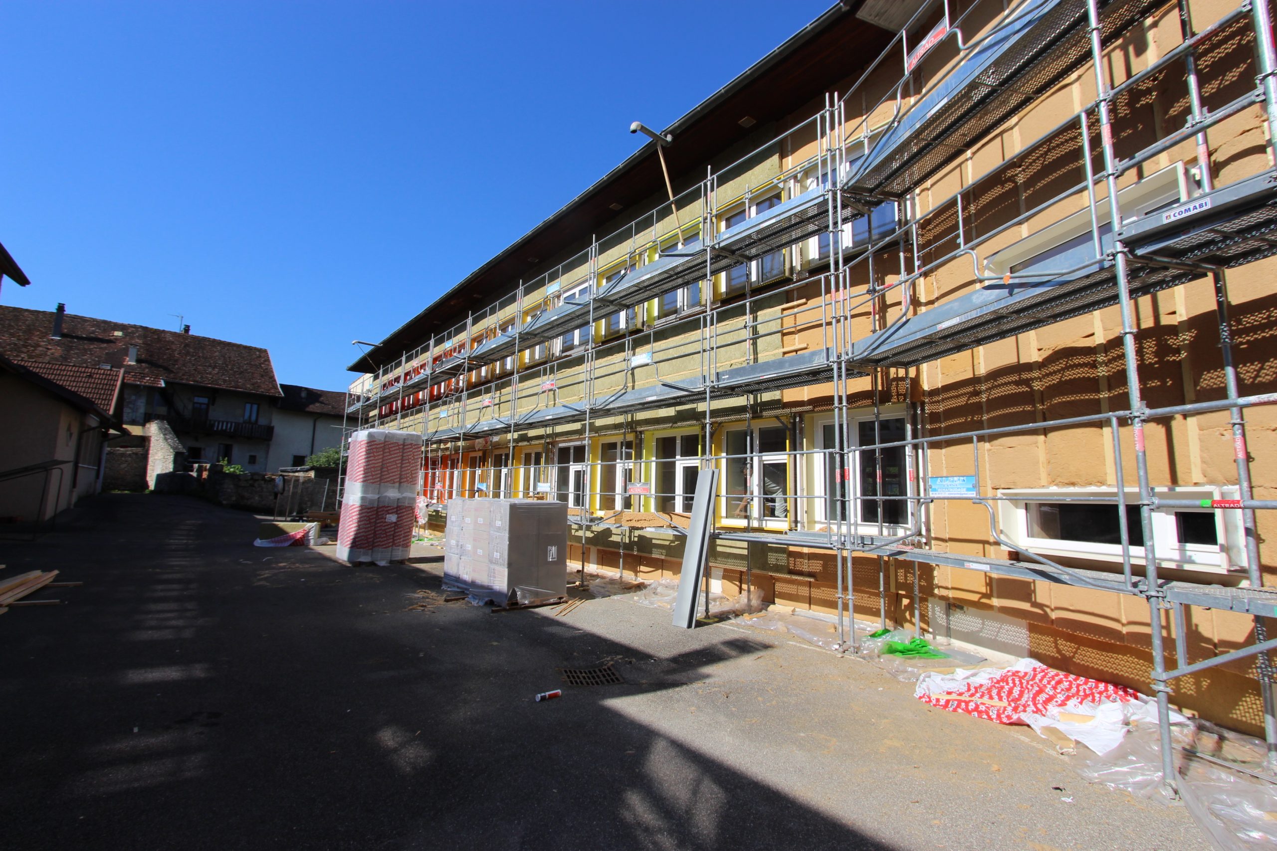 Le désamiantage, la mise en œuvre de matériaux bio-sourcés et un planning très serré durant les vacances scolaire nous ont donné un sacré défi pour ce chantier.