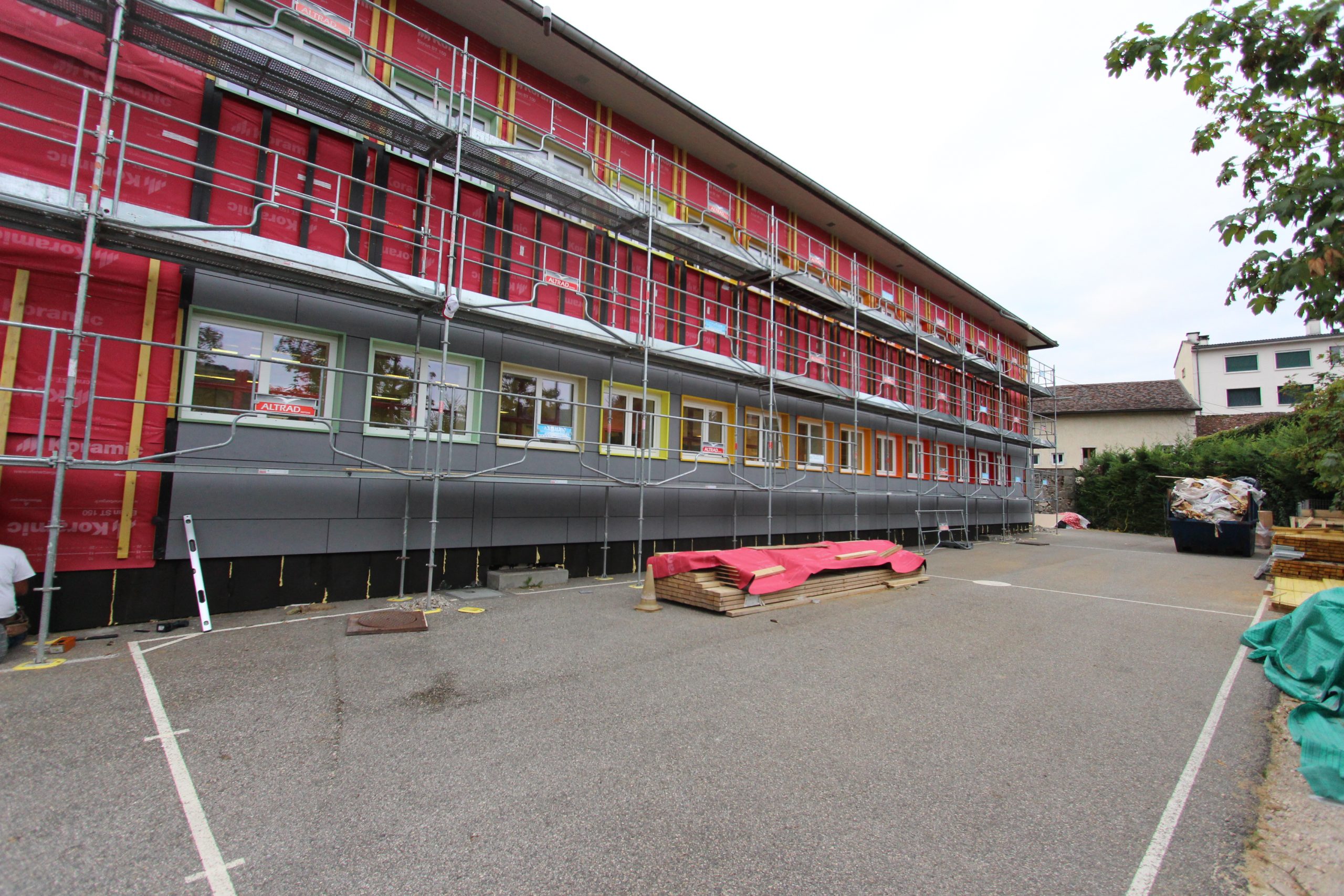 Les équipes de maîtrise d’œuvre et de maîtrise d’ouvrage voulaient s’inscrire dans la dynamique locale de territoire à énergie positive et l’étude s’est faite dans ce sens. Initialement, le doublage extérieur ainsi que le revêtement de façade devaient être exclusivement mise en œuvre avec des matériaux bio-sourcés. Ce genre de préconisations vont, actuellement, malheureusement à l’encontre de la règlementation incendie pour les établissements recevant du public.