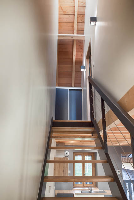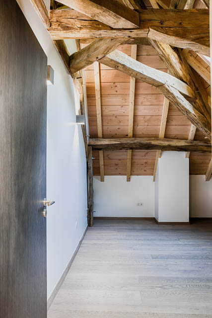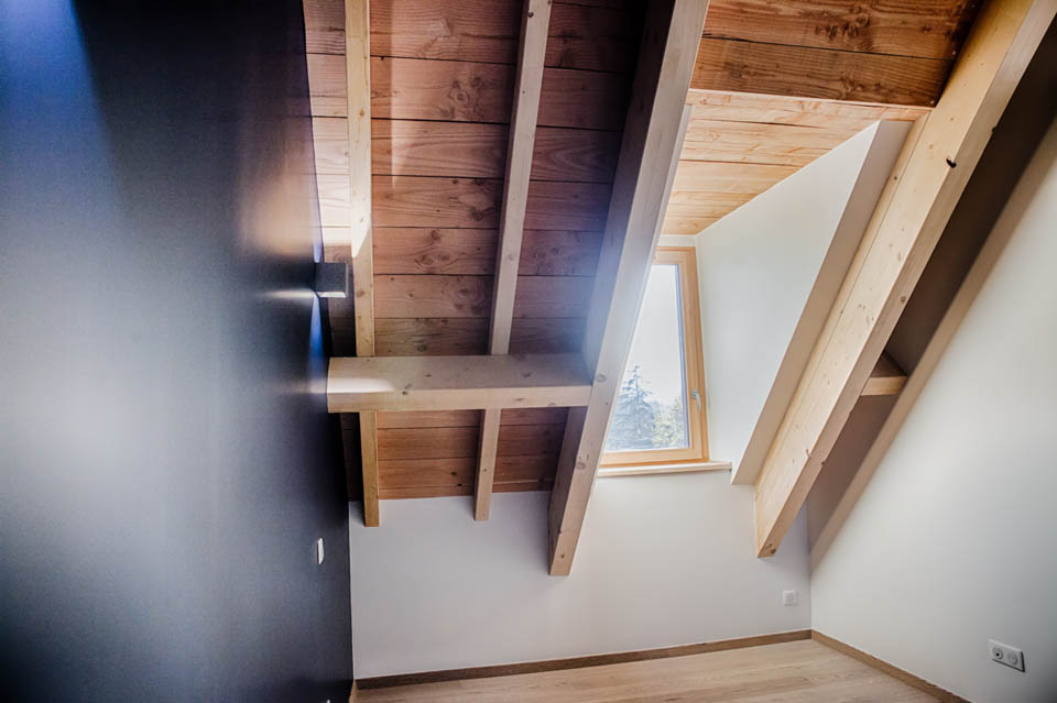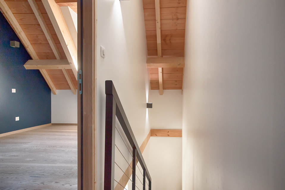 Pour garder une cohérence dans l’architecture structurelle du bâtiment nous avons opté pour des plancher en bois avec les solives apparentes.