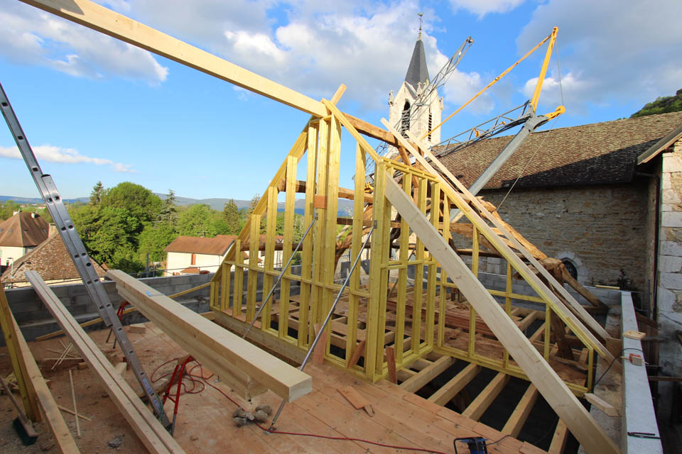 Afin de conserver sa relation avec l’Église adjacente, nous avons opté pour contenir le projet dans le volume existant et valoriser les combles par une belle luminosité en ajoutant des jacobines.