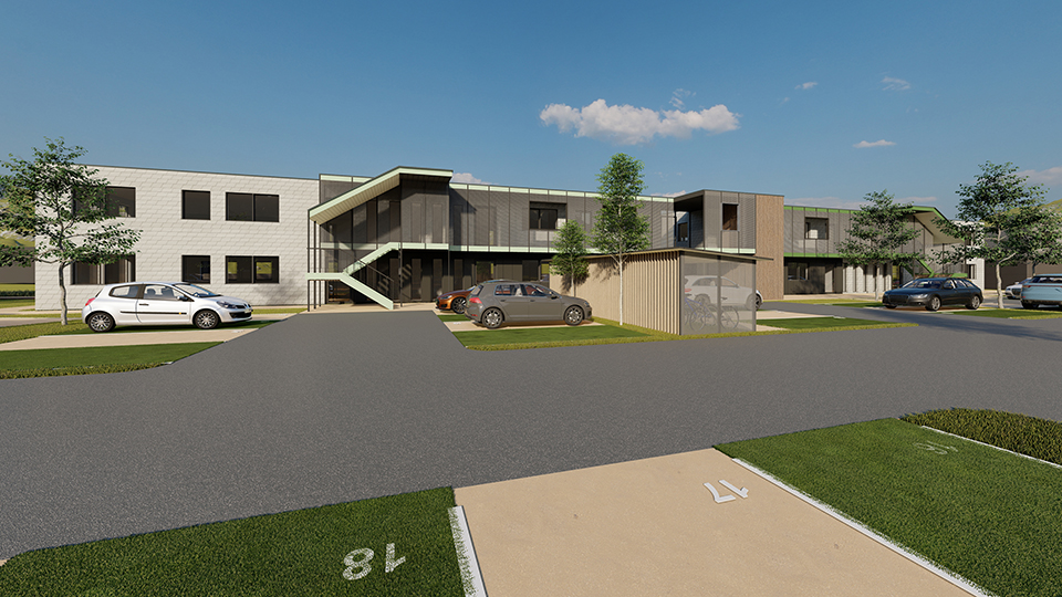 Un local vélo, couvert et sécurisé, est construit à proximité immédiate du bâtiment. Le bâtiment s’inscrit dans une démarche environnementale par la mise en œuvre de matériaux engendrant une performance énergétique. Sa volumétrie et son implantation y participent également. L’orientation au sud associée à la mise en œuvre de casquettes de protection solaire vient maximiser les apports solaires en hiver tout en assurant une protection de la surchauffe d’été. Au nord, la coursive de desserte abritée vient créer un espace tampon luttant ainsi contre les déperditions. Enfin, la volumétrie simple du bâtiment associée à la toiture terrasse végétalisé permet de produire une architecture compacte engendrant une plus grande efficience des systèmes techniques.