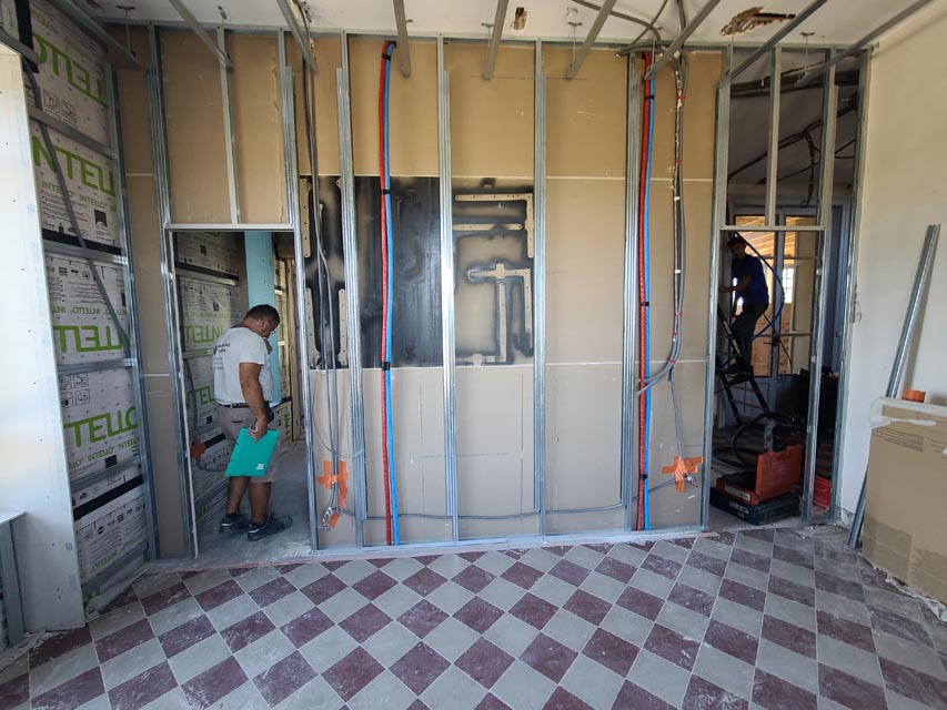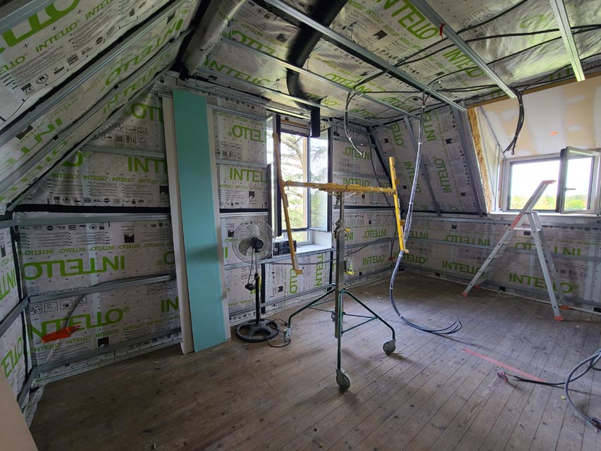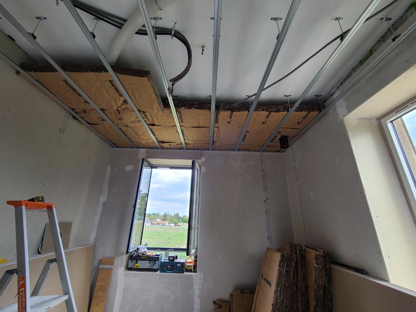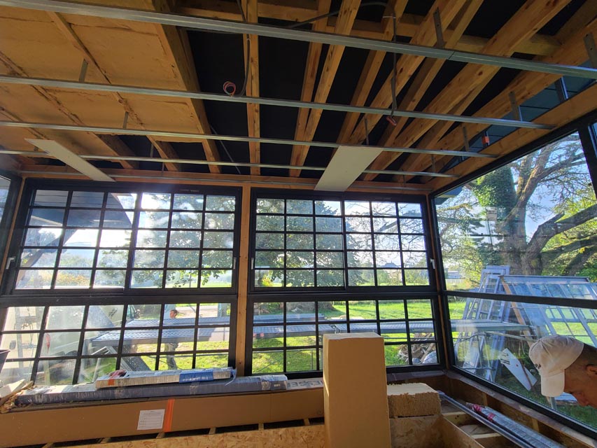 Un point d’honneur a été mis sur la qualité de l’enveloppe thermique. L’isolation, en laine de bois et fibre de bois permet d’assurer un confort thermique hivernal et estival.