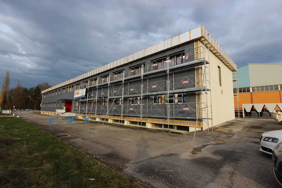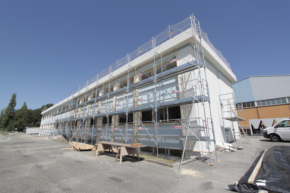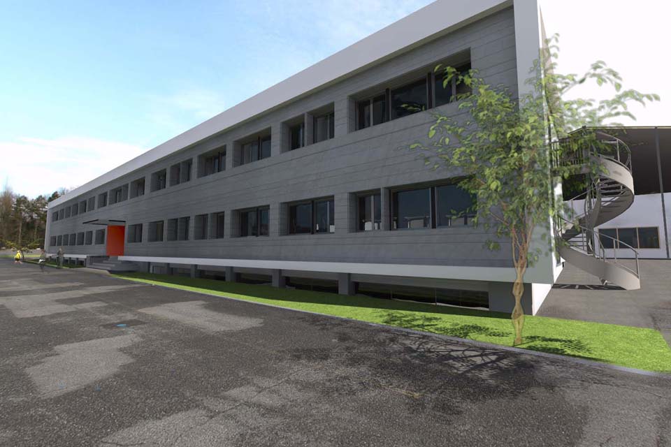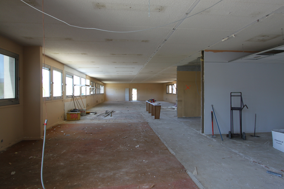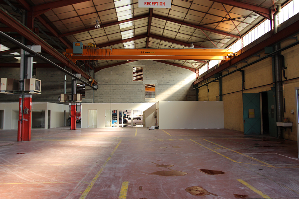 Le bâtiment existant présente une partie de bureaux de près de 1600 m² sur 3 niveaux et un atelier de plus de 9600 m².Le réaménagement des bureaux permet d’accueillir du public et les personnes à mobilité réduite et offre un nouveau design.