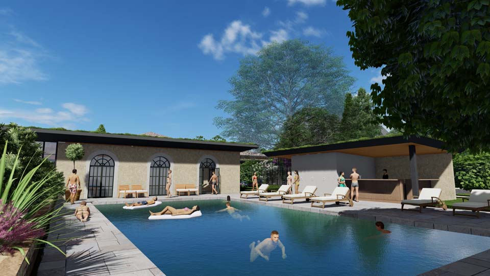 Derrière cette annexe nous souhaitons réaliser « un wellness » espace détente / spa pour les hôtes du château. Le projet prévoit la réalisation d’une nouvelle Orangerie pour une salle des mariages. Une piscine extérieure sera imaginée en lien avec ces nouveaux espaces.