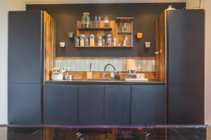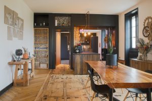 La cuisine existante du logement attentant était une pièce fermée, le projet a ouvert les espaces de vie privées (salon/salle à manger et cuisine) entre eux pour donner plus de lumière dans les étages.