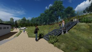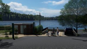 La deuxième phase des travaux comprendra la création d’une nouvelle plateforme de stationnement PMR devant le portail principal, le stationnement pour les vélos dans des boxes équipés de stations de recharge, la réhabilitation du parking existant en haut du terrain, ainsi que la création de nouvelles assises le long de la rue avec vue sur le lac.