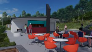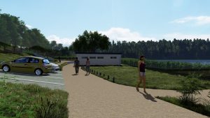 Le projet comprend plusieurs interventions visant à améliorer les conditions du bâtiment principal – restaurant/buvette – ainsi que les accès pour les piétons et le stationnement des véhicules.