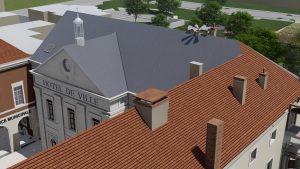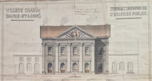 La volonté de la mairie était également de préserver l’aspect extérieur du bâtiment de l’hôtel de ville et ses ailes qui sont qualifiés d’immeuble d’intérêt patrimonial, ce qui est également préconisé par l’AVAP (Aire de mise en valeur de l’architecture et du patrimoine). Des travaux sont alors nécessaires pour se conformer à ces exigences. Notre travail est ainsi cadencé d’échange avec les Architectes des Bâtiments de France pour proposer une réponse au plus juste des attentes concernant notamment les encadrements de pierre, les couvertures et les souches de cheminées, dans l’idée de respecter les directives en matière de matériaux et de mise en œuvre. La conservation des matériaux traditionnels comme la pierre calcaire de Fontaines et les petites tuiles plates est essentielle pour préserver l’identité historique du bâtiment. Les encadrements, les modénatures en pierre et les détails architecturaux tels que les moulures, frises, corniches, épis de faîtage, cheminées, charpente, éléments de couverture et sculptures doivent être restaurés conformément aux techniques traditionnelles. Les enduits des parties courantes seront réalisés avec un mélange de chaux naturelle, majoritairement aérienne, mélangée avec du sable local. Tous ces éléments de décors et de modénatures qui émaillent les façades de Chagny doivent être soigneusement restaurés pour assurer leur pérennité.