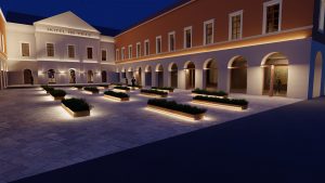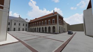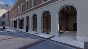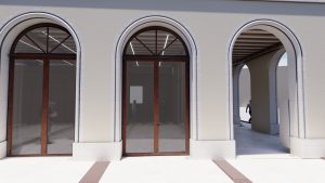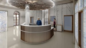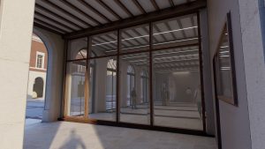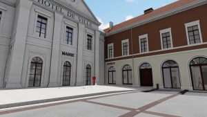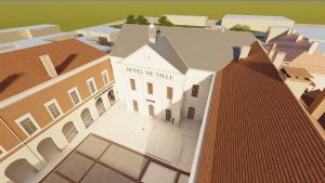 L’accès principal à la mairie sera repositionné au centre du bâtiment principal, depuis la place de l’hôtel de ville et desservira un grand hall d’accueil traversant.