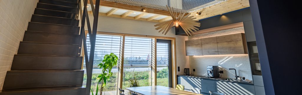 Ses locaux sont installés dans un bâtiment en ossature bois à énergie positive, conçu et réalisé en 2019 par l’architecte et son équipe. Ce lieu de travail est à la fois un outil et une démonstration concrète des valeurs portées par l’agence.